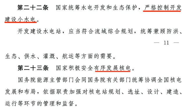 第二十二條:國家統(tǒng)籌水電開發(fā)和生態(tài)保護(hù),嚴(yán)格控制開發(fā)建設(shè)小水電。