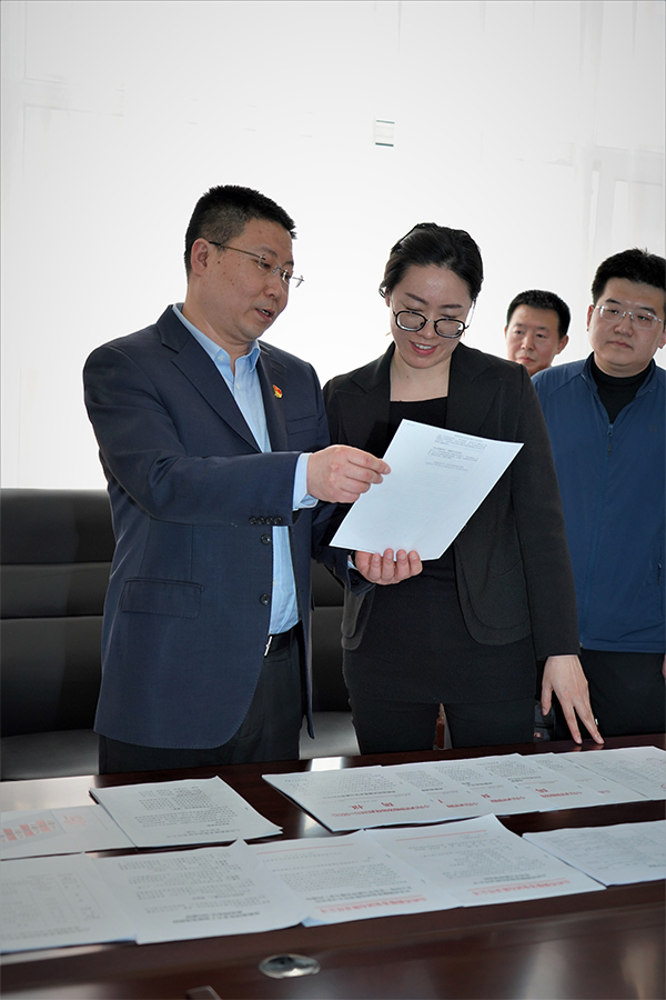座談會后,督導組一行對集團黨建工作資料進行了細致檢查,張軼副董事長向督導組詳細介紹了集團黨員情況、黨委制度建設情況、黨史學習教育培訓班成果和宣傳成果等內容。